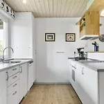 Cette villa 8841-Glesborg-Strandskadevej-14 comprend une cuisine équipée qui est équipée d'une bouilloire électrique, d'un réfrigérateur et d'un four.